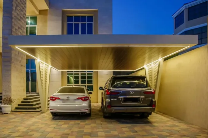 نقدم حلول مظلات سيارات تجمع بين: