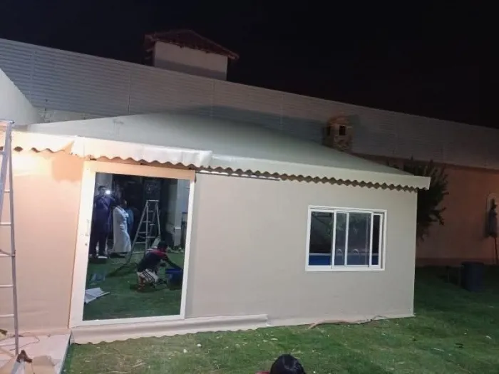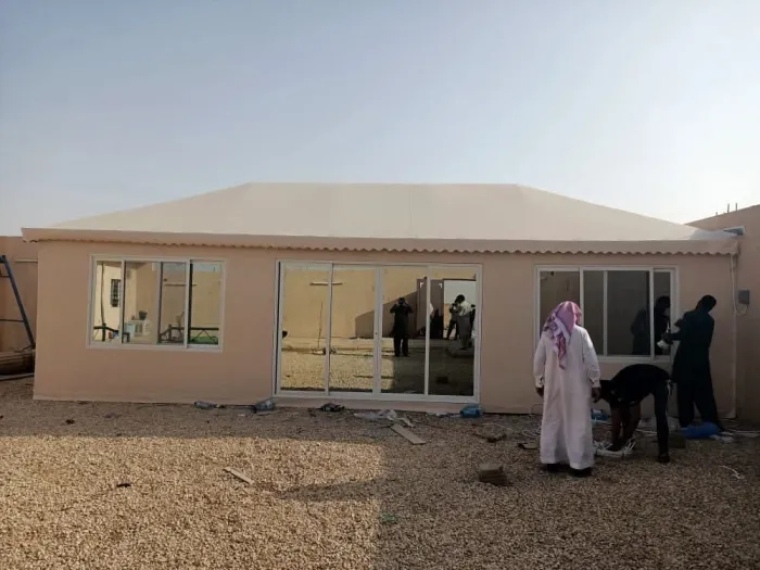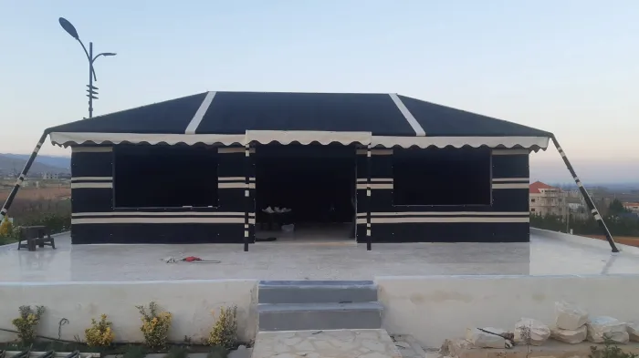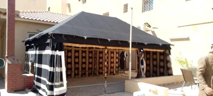 الهيكل: حديد متين ومقاوم للصدأ والتآكل، يتم تثبيته بعمق لضمان الثبات.العزل: طبقات عازلة حرارية ومائية (مثل مواد كورية الصنع) تمنع دخول الحرارة والمياه، وأحيانًا عزل للصوت.الأرضيات: يمكن صبها بارتفاع معين لزيادة العزل ومنع دخول الحشرات او المطر.الأعمدة: تثبيت محكم ودقيق لضمان استقرار البيت. المواصفات الداخلية (الديكور والفخامة)الأقمشة: استخدام أقمشة فاخرة مستوردة (كوري، ألماني) بألوان ونقوش متنوعة (سدو، مخمل).الفرش: تجهيزات كاملة تشمل فرشًا أرضيًا فاخرًا، سجاد، كنبات، ومساند.الإضاءة: شبكات إضاءة قوية وثريات تعزز الأجواء الملكية والساحرة.افظل تركيب بيوت شعر الرياض بيوت شعر الخرج بيت شعر ملكي- التفاصيل: معى النجم للمظلات والسواتر