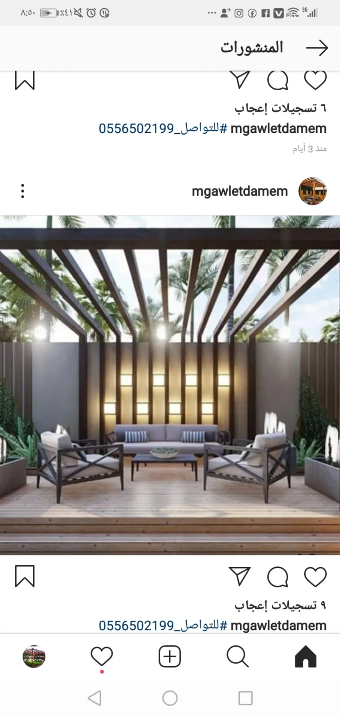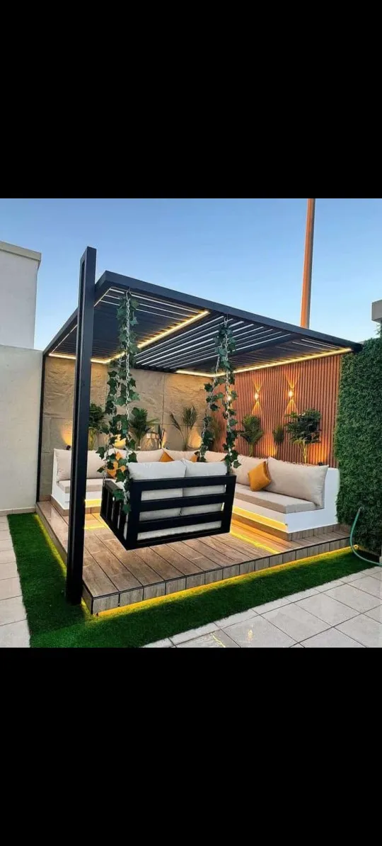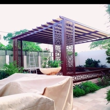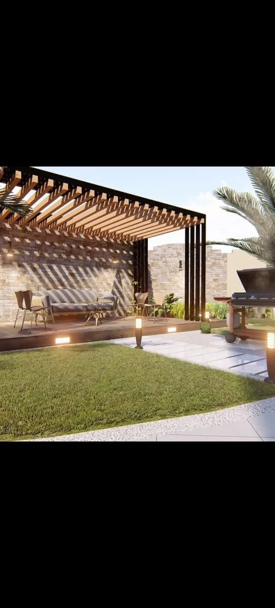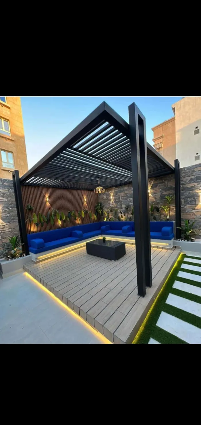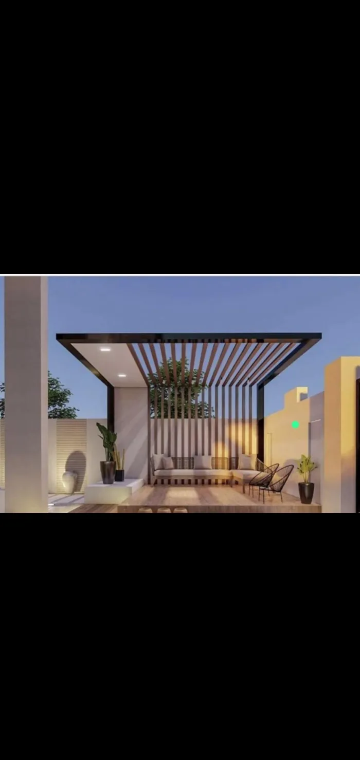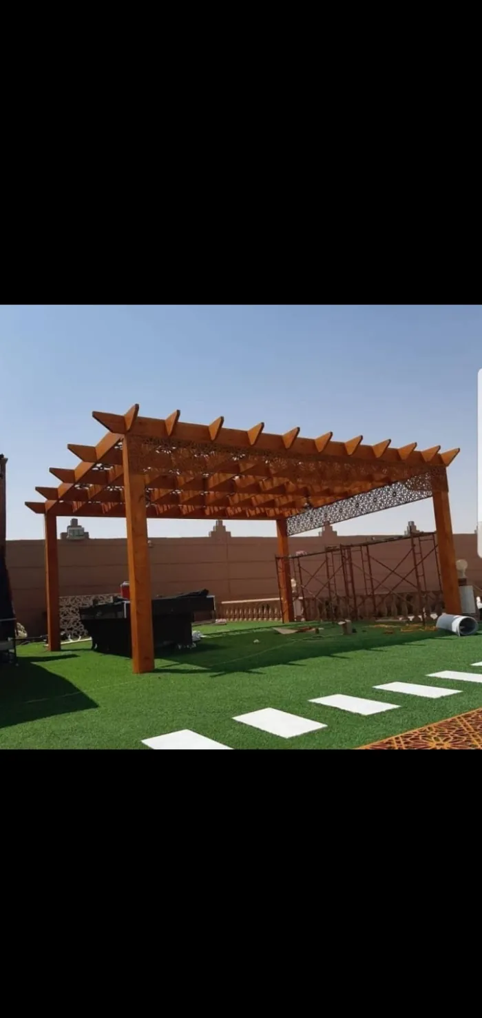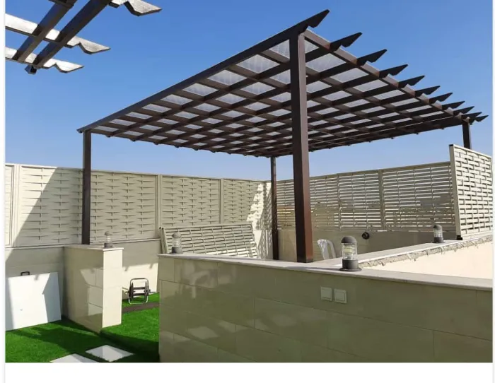 مظلات البرجولات: هياكل تستخدم عادة في الجلسات الخارجية لإضافة لمسة فنية وتوفير ظل جزئي أو كلي.