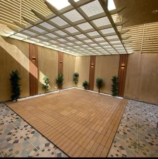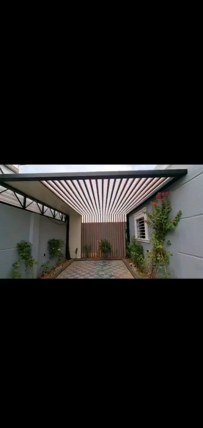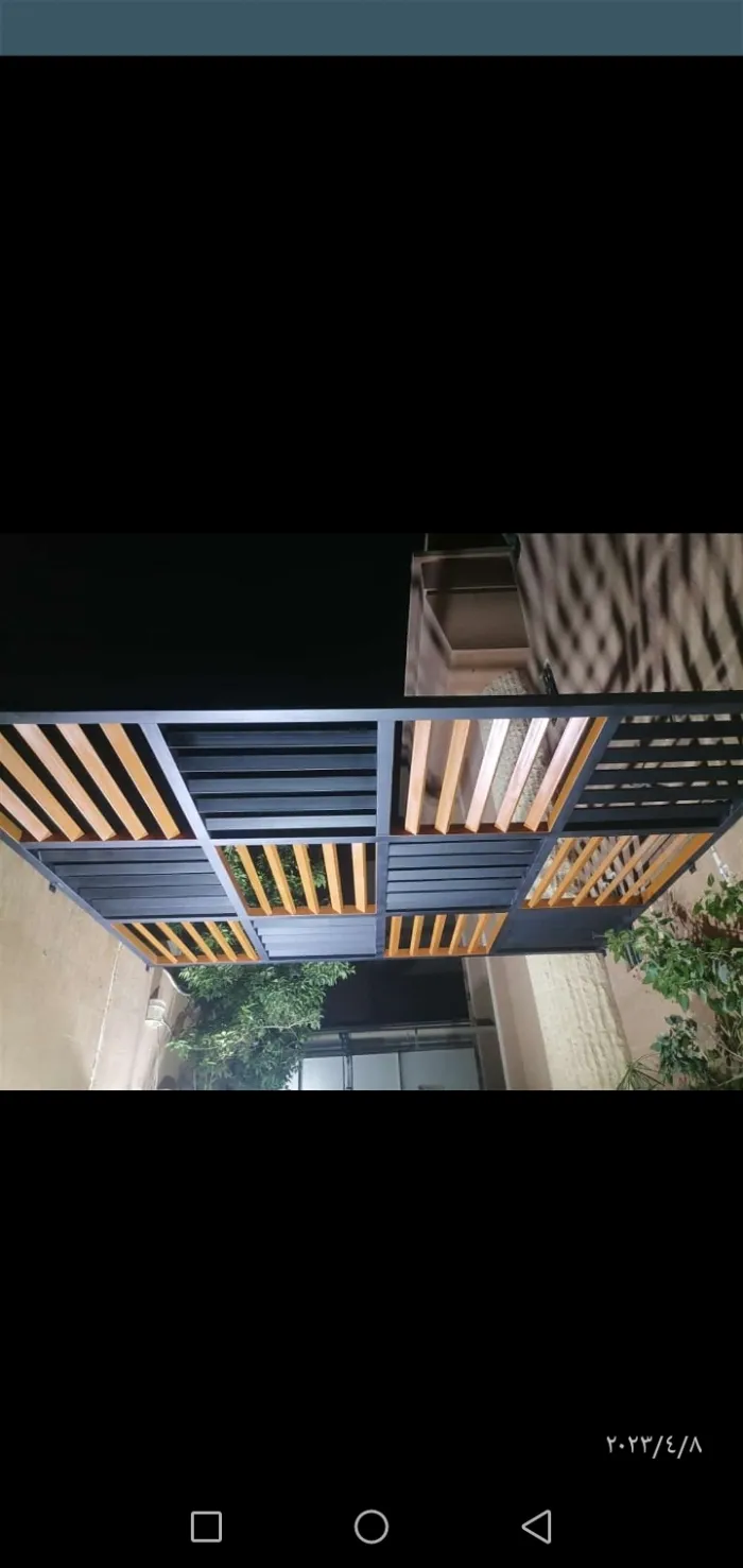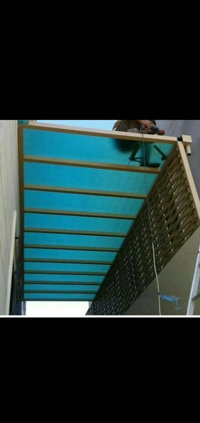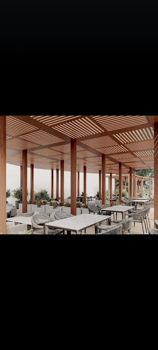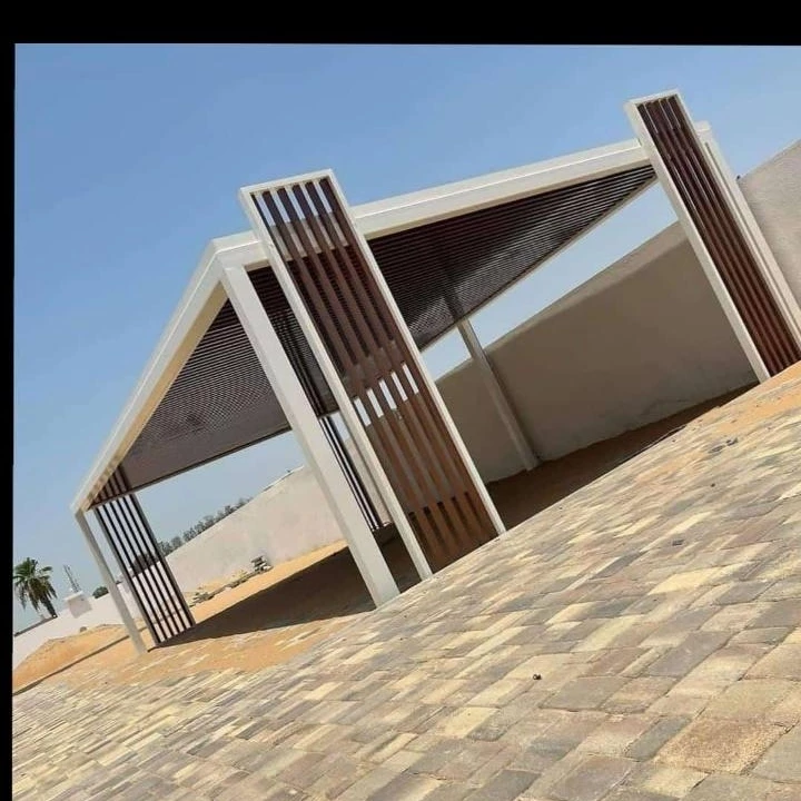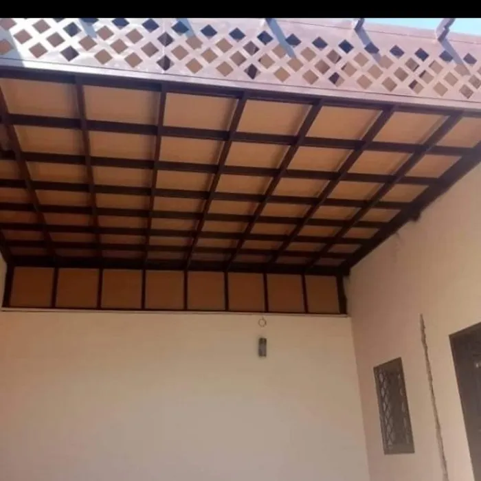 مظلات خشبية (طبيعية أو بلاستيك معالج WPC): تمنح مظهراً طبيعياً خلاباً للحدائق والبرجولات.
