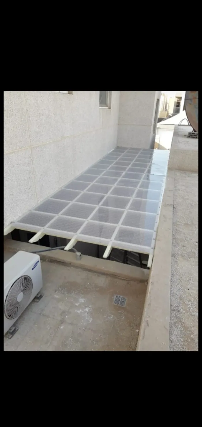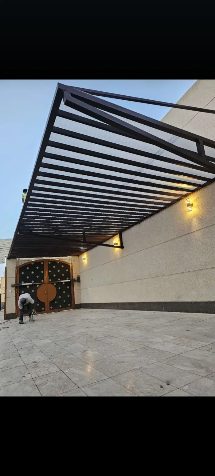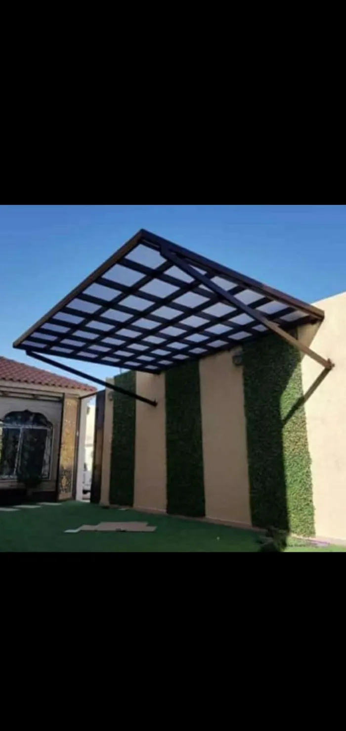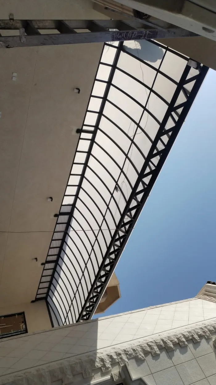 مظلات اللكسان (Lexan): مادة تشبه الزجاج لكنها غير قابلة للكسر، وتُستخدم بكثرة في مداخل الفلل والمسابح.