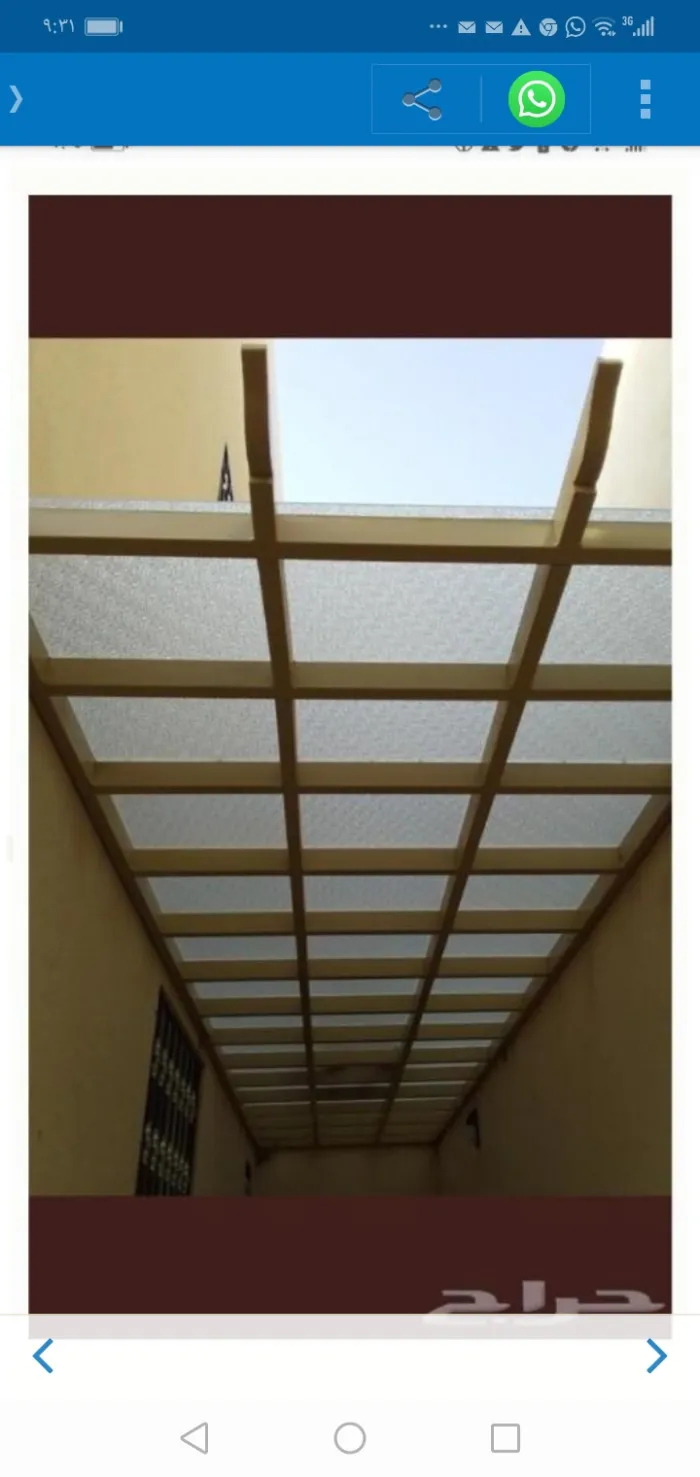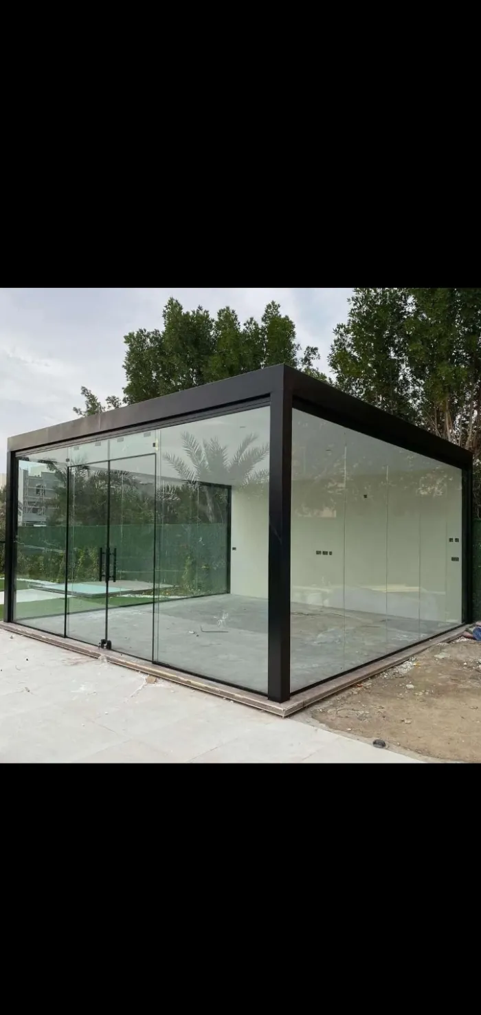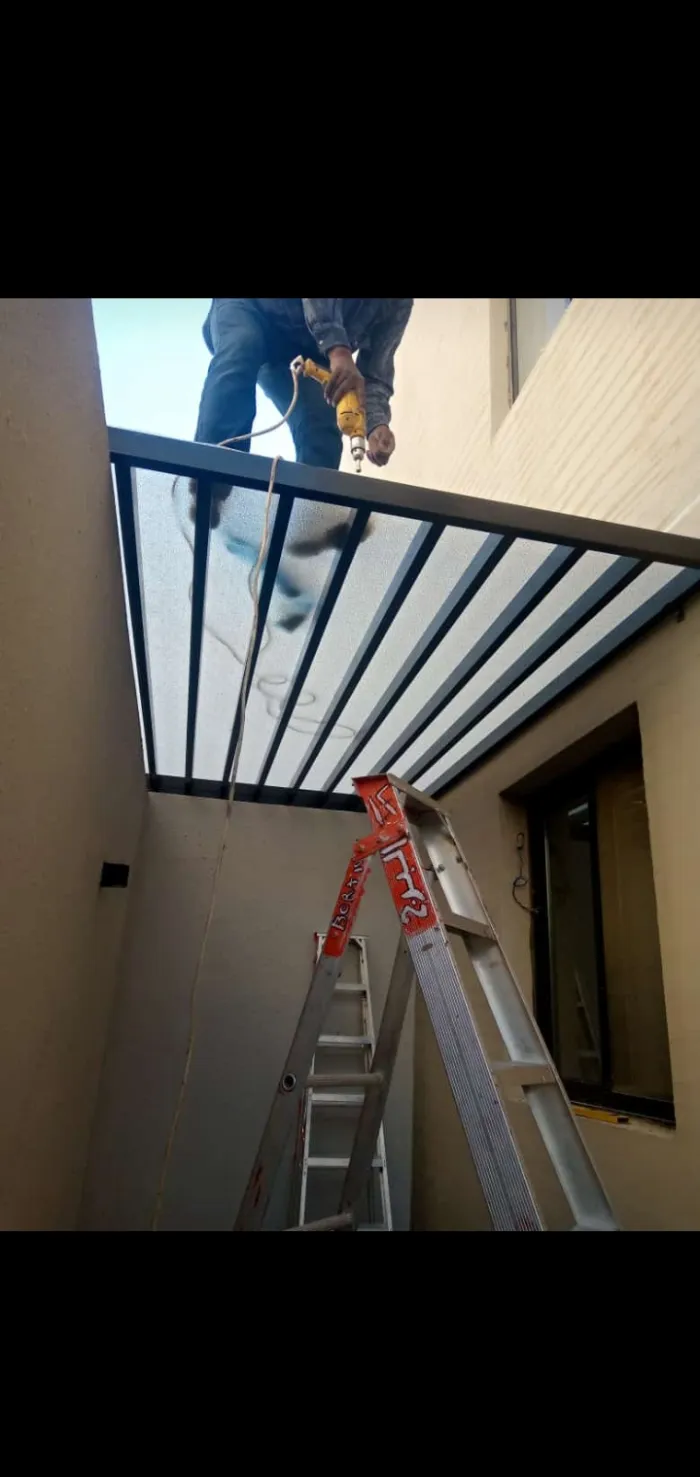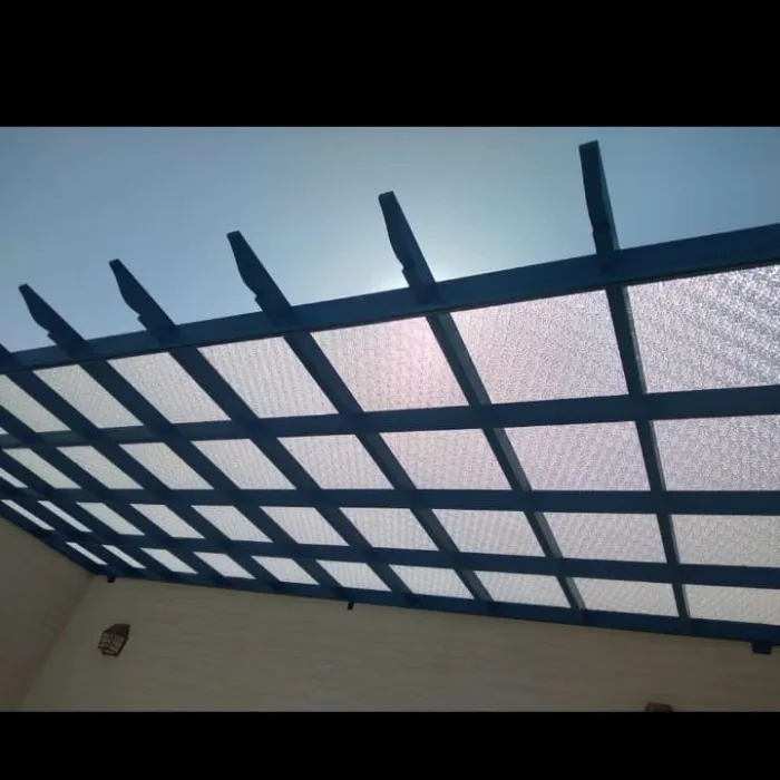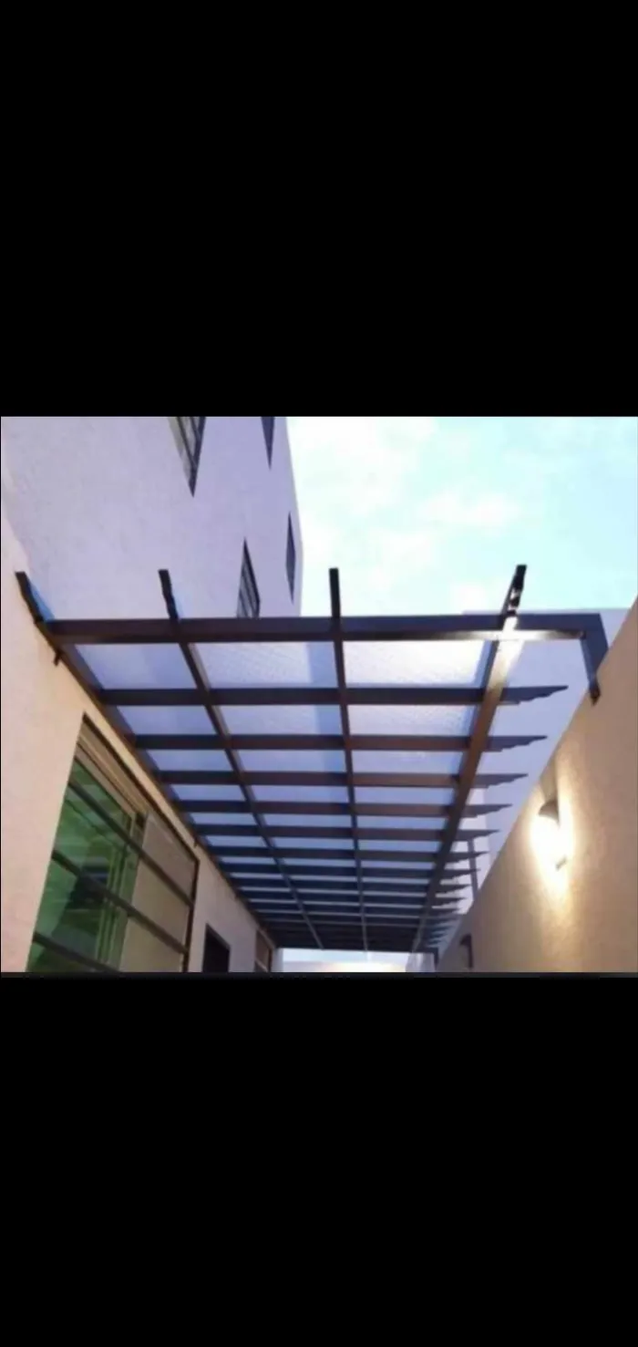 مظلات اللكسان (Lexan): مادة تشبه الزجاج لكنها غير قابلة للكسر، وتُستخدم بكثرة في مداخل الفلل والمسابح.