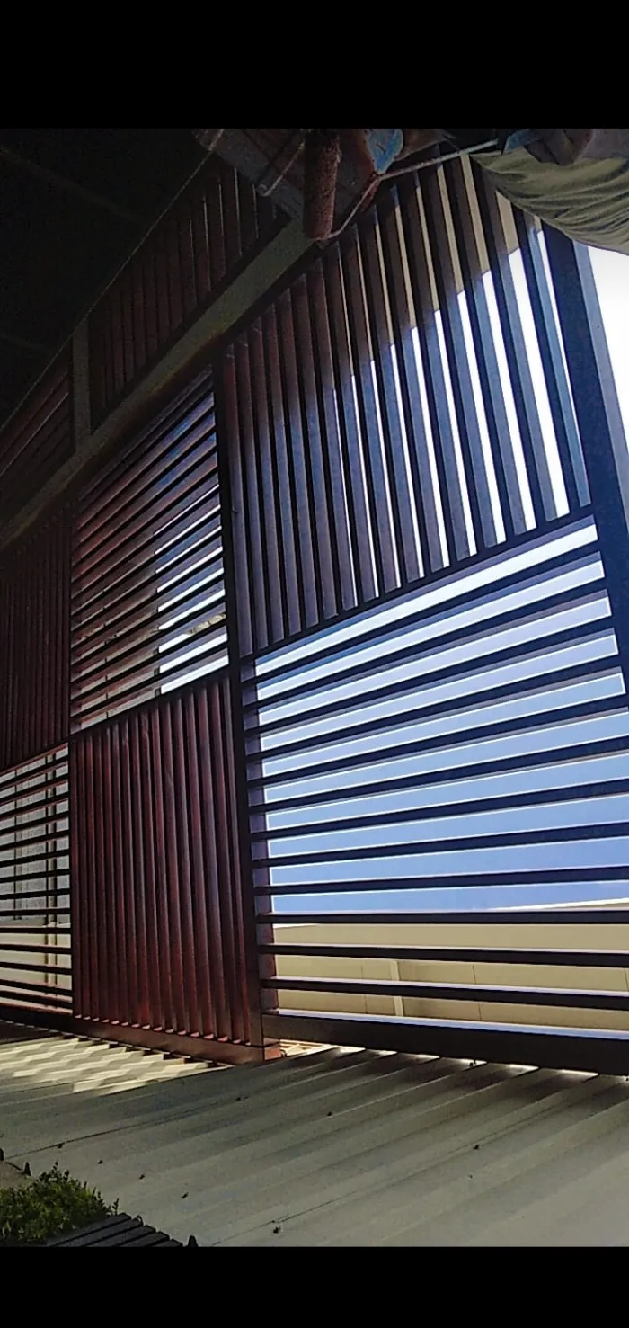 مظلات حديد (بدهان خشبي): تجمع بين متانة الحديد وشكل الخشب الجمالي.