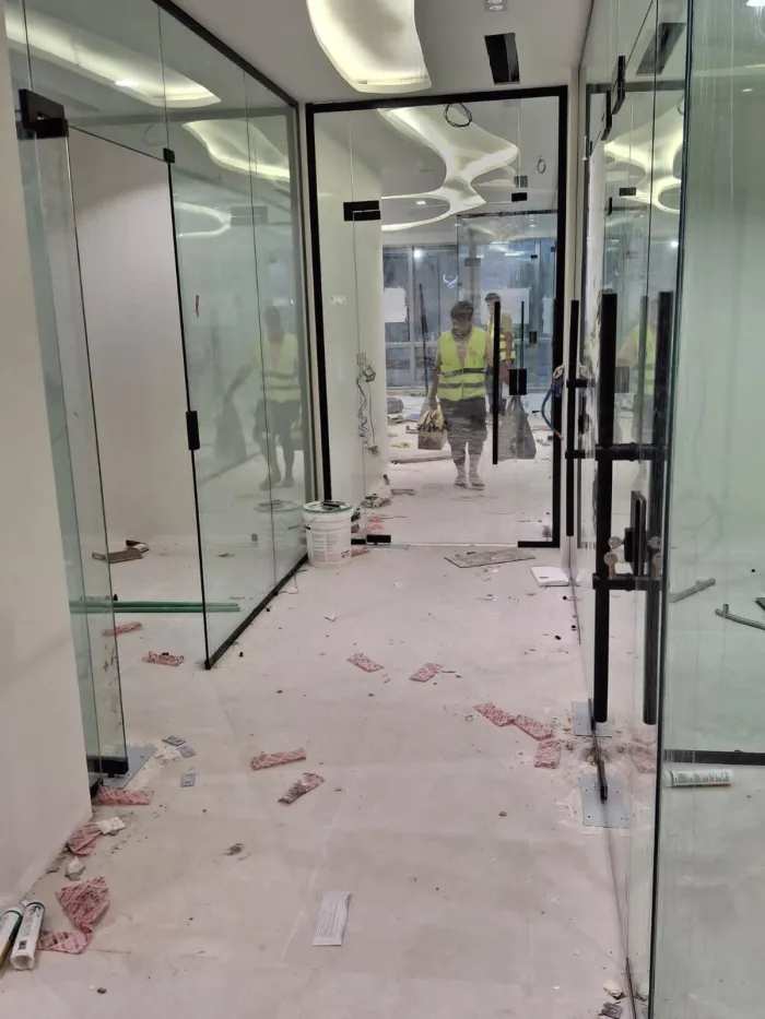 عملية التركيب: تشمل المعاينة الدقيقة، تفصيل الزجاج في المصانع الخاصة، ثم التركيب بواسطة فرق محترفة باستخدام معدات حديثة لضمان التثبيت القوي.